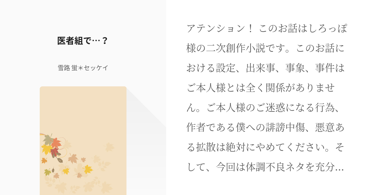 2 医者組で ?○○組で - 雪路 蛍*セッケイの小説シリーズ - pixiv。