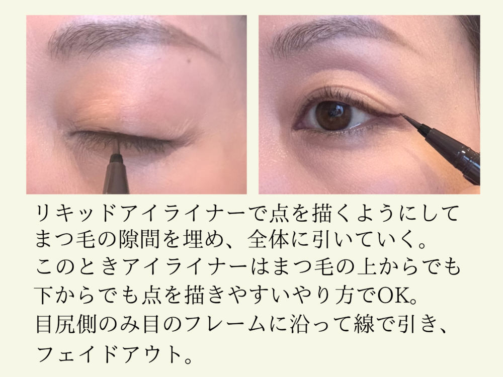 粘膜色アイラインの使い方アイメイク入門ナチュラル50代メイク。