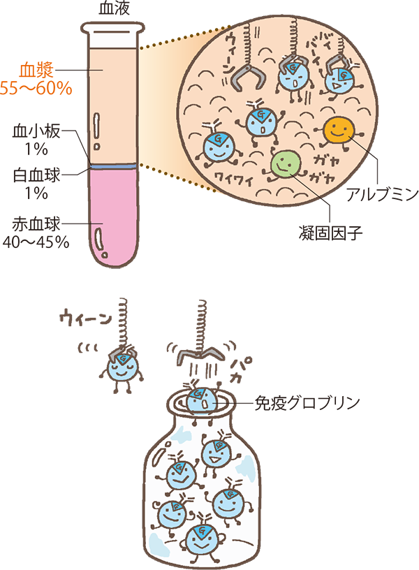 血漿たん白の生理作用 2. 免疫グロブリン JBスクエア 日本血液製剤機構 医療関係者向け情報。