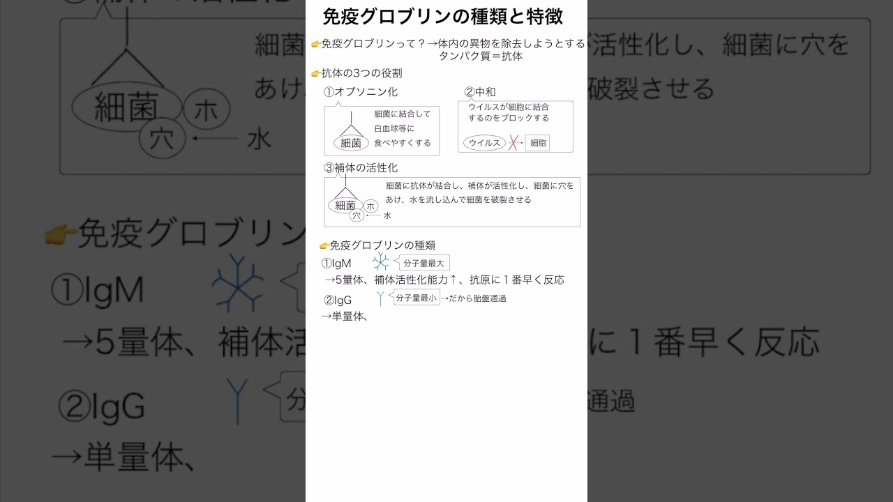1分で理解:免疫グロブリンの種類と役割実習生勉強看護実習看護師試験 - YouTube。