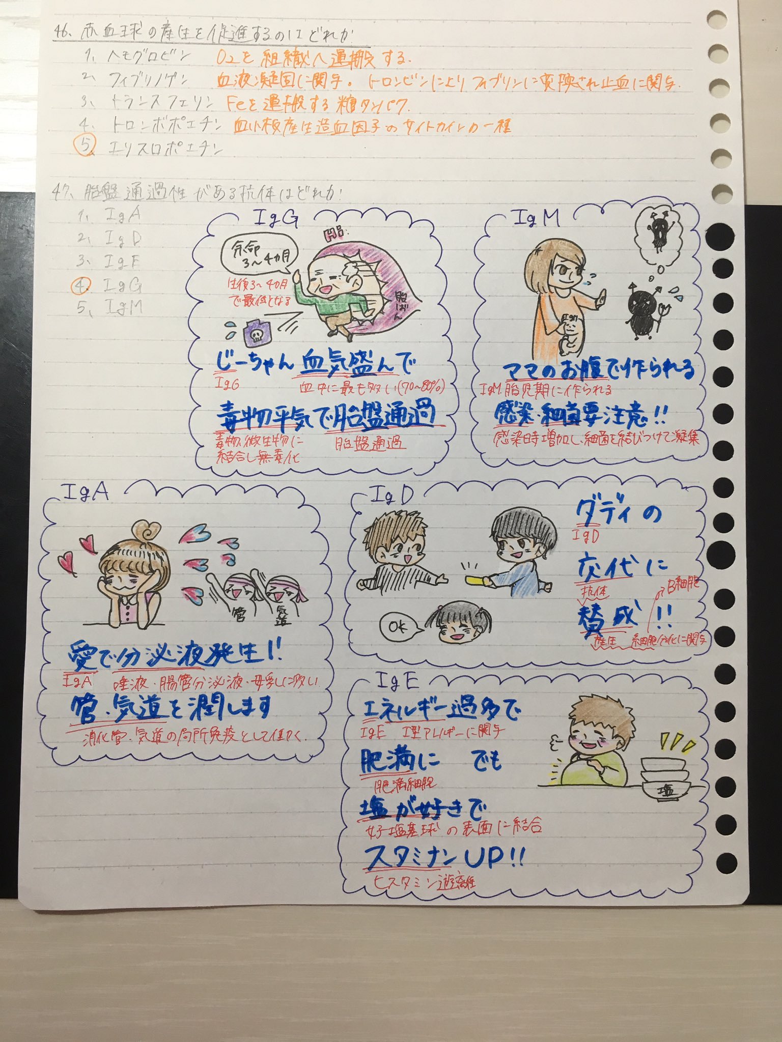 今回紹介する先輩 @ns.maru_03 は、免疫グロブリンについて、かわいいイラストとともに わかりやすくまとめてくれています。 看護師国家試験まで4ヶ月を切りましたね !自分なりにわかりやすく整理すると覚えやすい❣️ また、イラストも加えるとさらに◎ 『レビュー。