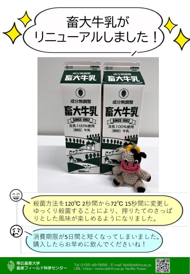 畜大牛乳・畜大アイス – 帯広畜産大学 畜産フィールド科学センタ。