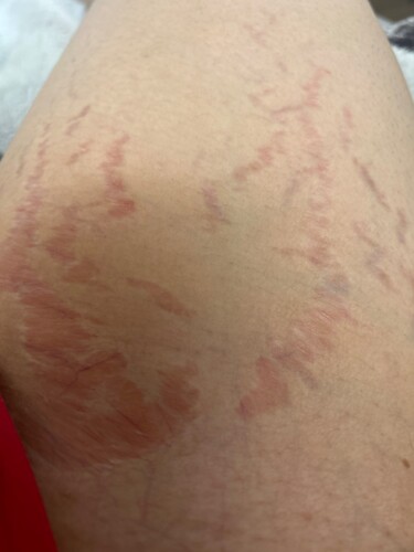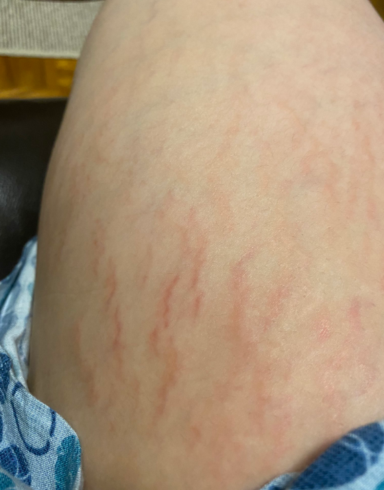 太ももに肉割れ傷跡治療、ケロイド 肉割れ・妊娠線の治療 の。
