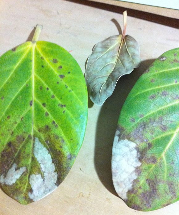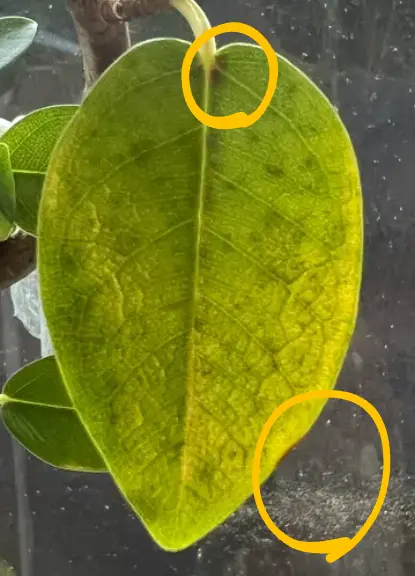 ゴムの木の葉っぱに斑点 : r plantclinic。