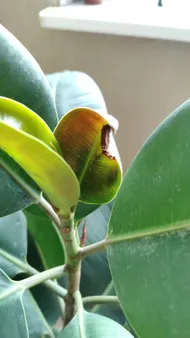 ゴムの木、どうしたんだろ?いつも茶色い斑点ができるんだよね。枝分かれしてる方は大丈夫みたいだけど。 : r houseplants。