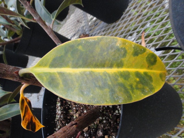 ゴムの木の葉、病気でしょうか?黄色い斑点がでてきて、光に当たるとそこが- Yahoo!知恵袋。
