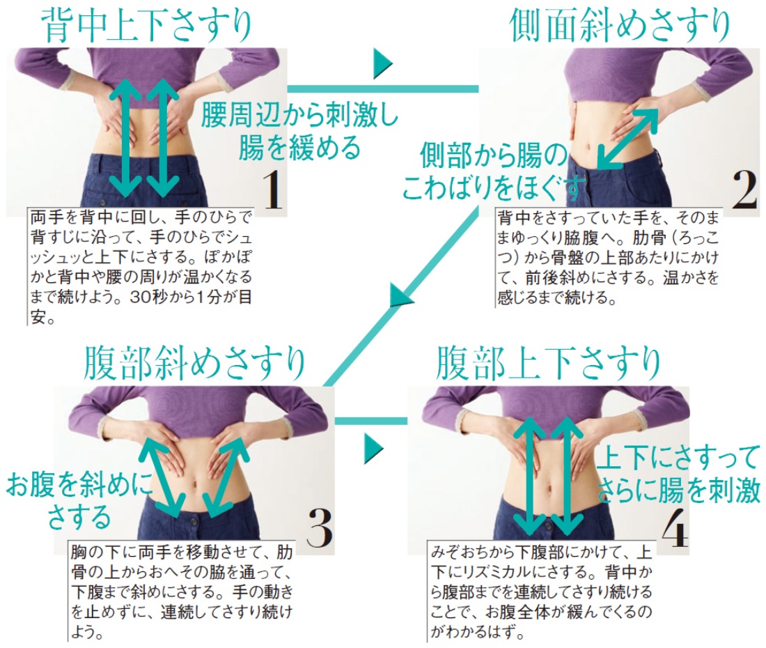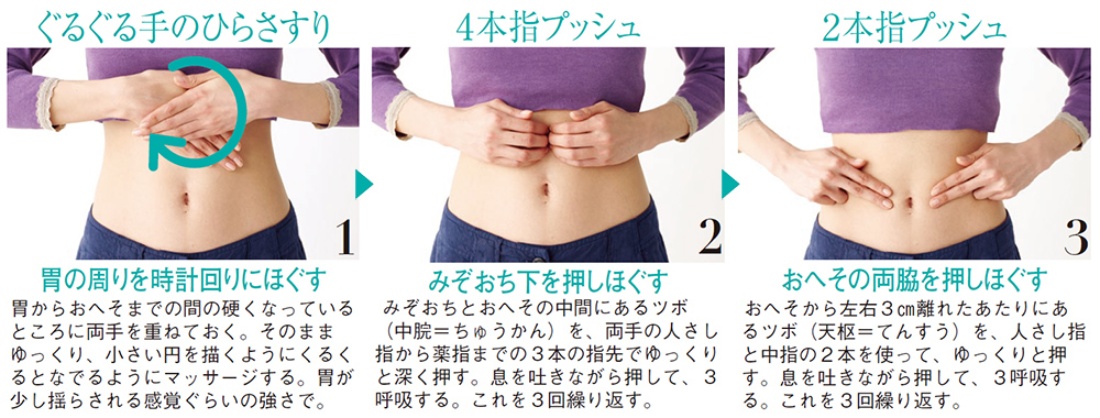ぽっこりお腹がスッキリ!自分でできる「腸活マッサージ&ストレッチ」 - 朝時間.jp。