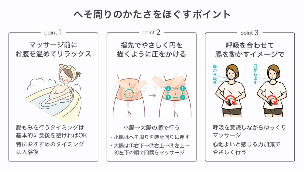 腸もみでへそ周りがかたいのはなぜ?原因や正しい腸もみのポイントも解説 - ミルテル。