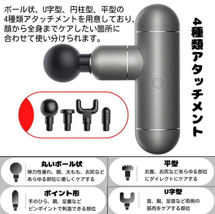 楽天市場 筋膜リリースガン マッサージガン ハンディガン アタッチメント 振動 全身 女性 筋膜ガン 背中 太腿 肩こり マッサージ器 ハンドハンディ リラック 電動 手軽 強振動 : OHplus。
