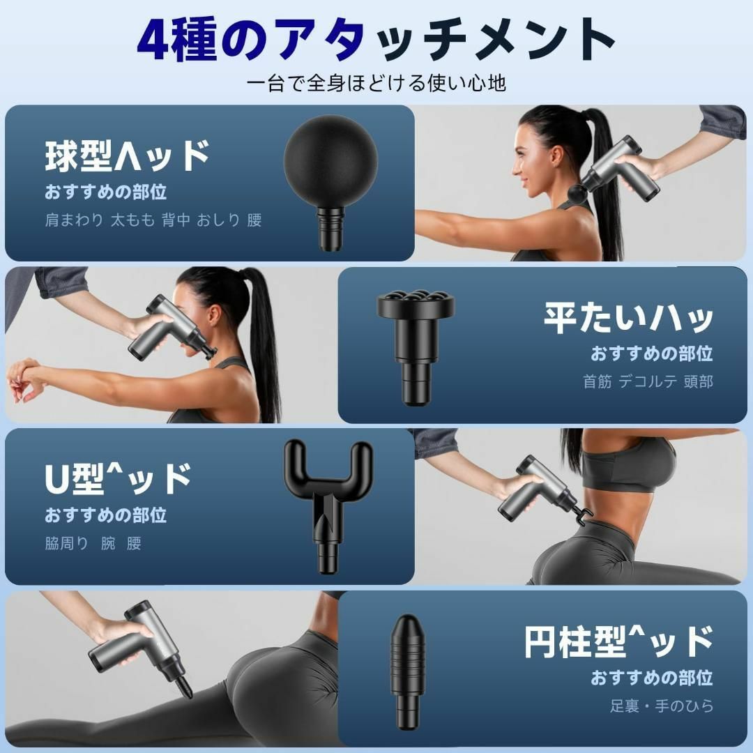 ハンディマッサージガン USB-C充電式 筋膜リリース機器 6段階調節 4種類ヘッド 軽量小型 大容量バッテリー 筋膜マッサージ器 静音設計 全身 肩腰 背中 肩甲骨まわり お尻 ふくらはぎ マッサージガン 高頻振動 トレーニング フォーム バレンタインギフトの通販はau PAY。