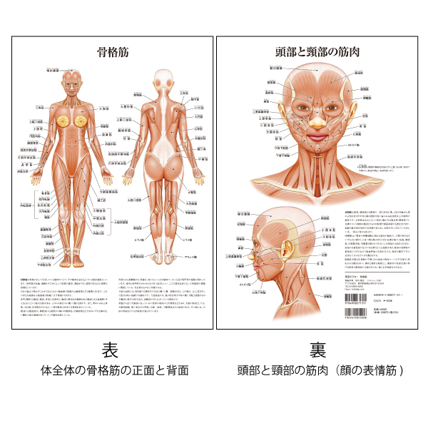 美容ポスター 骨格筋 表:体全体の骨格筋の正面と背面 裏:頭部と頸部の筋肉 顔の表情筋プロ専用エステ・理美容・ネイル・整体商材の卸・通販サイトのサロンプラネット。