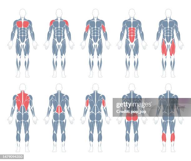 前面と背面ビュー の女性の体の最も重要な筋肉の正確な説明と筋肉グラフは白の背景にベクトル画像を分離しました -人体構造のベクターアート素材や画像を多数ご用意 - iStock。