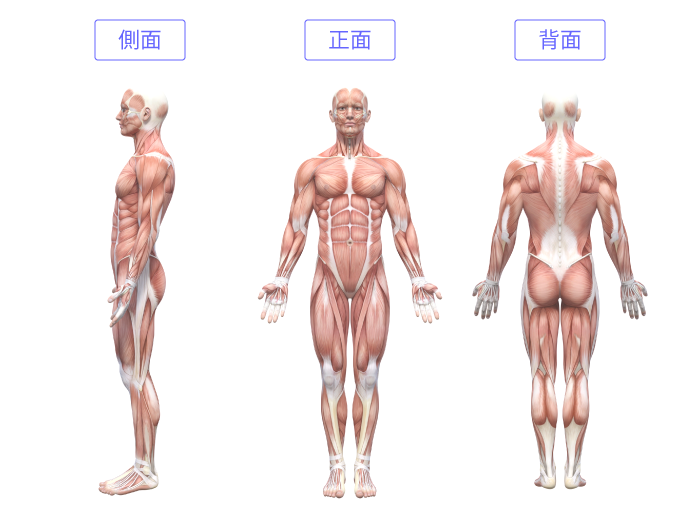 筋肉解剖図の男性3Dイラスト 全身正面 横向き 背面 ポーズ素材 Stock IllustrationAdobe Stock。