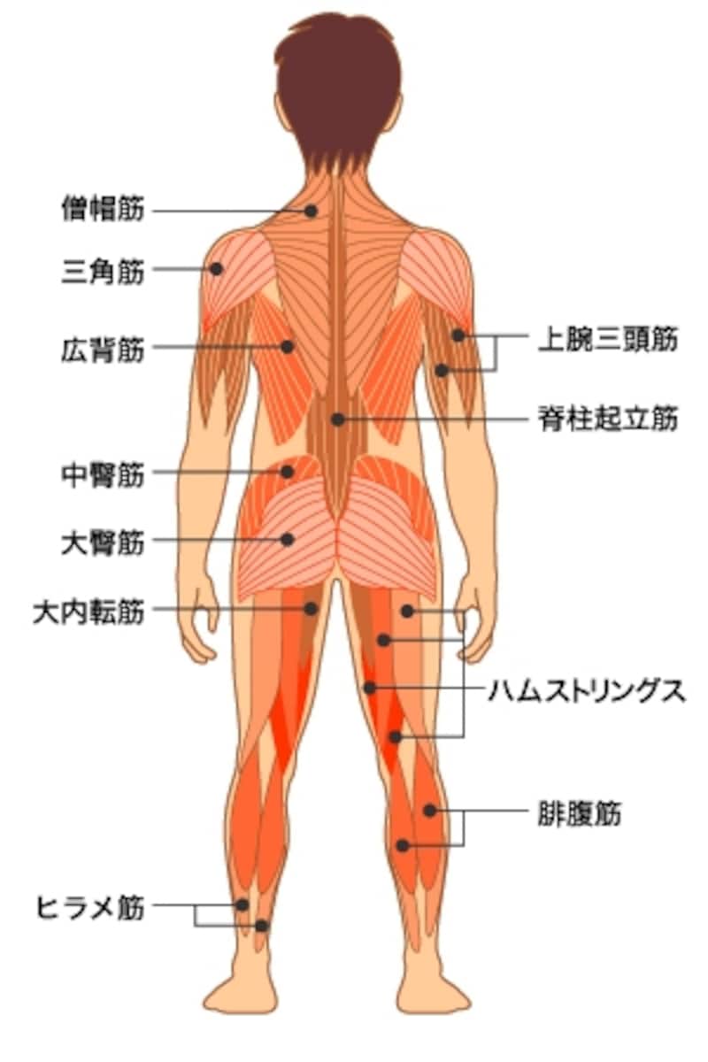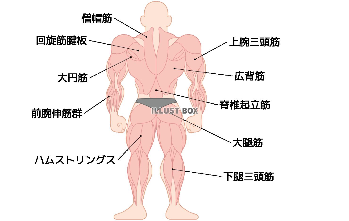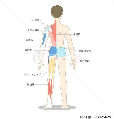 背面からみた男性の全身の筋肉のイラスト、筋肉の名称つきのイラスト素材73425629- PIXTA。