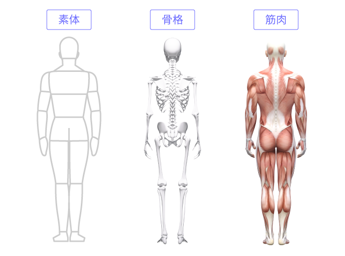 全身の筋肉と骨格 後方からみる のイラスト - 医療のイラスト・写真・動画、素材販売サイトのメディック medick。