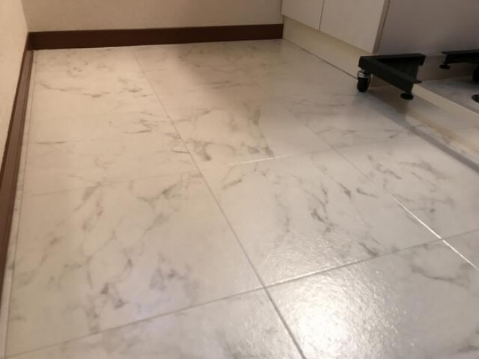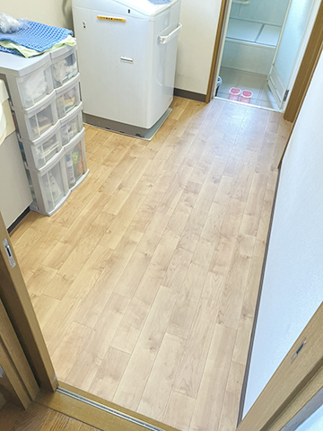 洗面所床クッションフロア貼り向日市で水回りのリフォームなら向日市で水回りのリフォームを承る 住まうとサポート。
