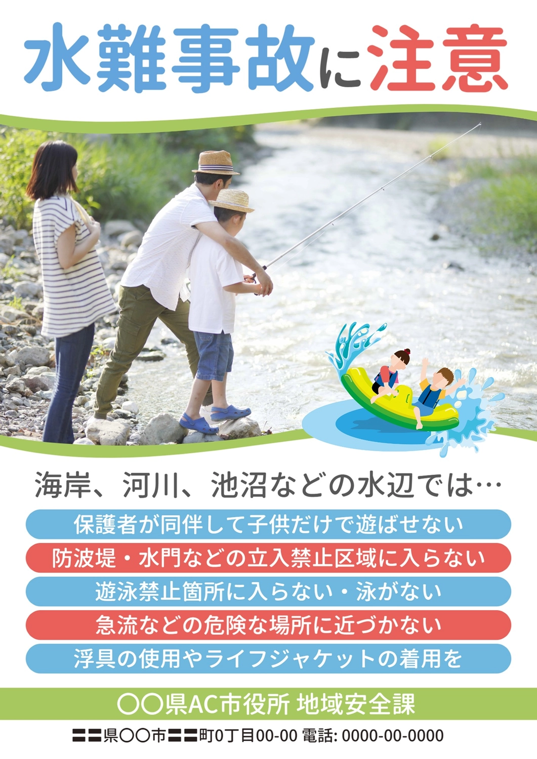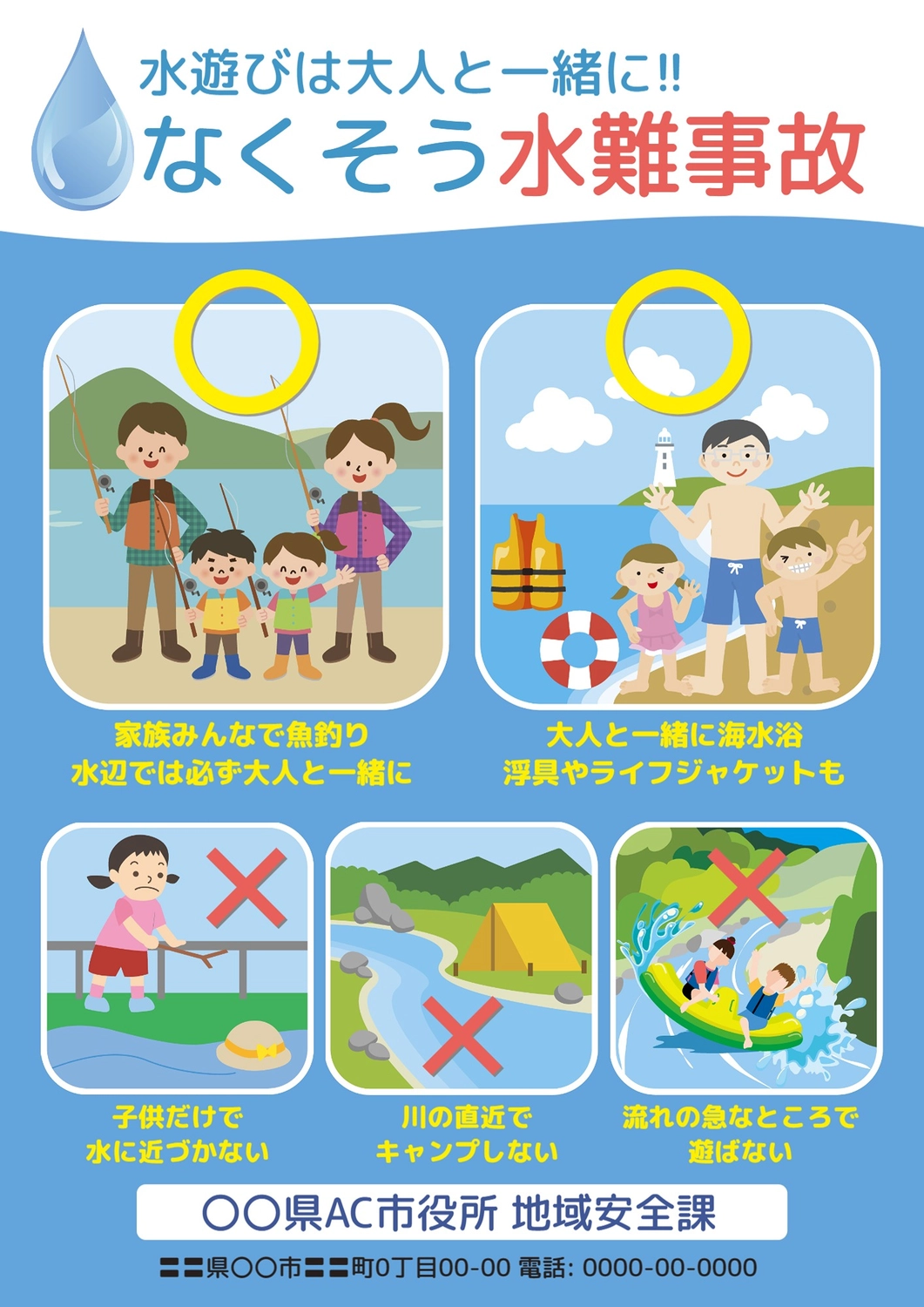 親子イラストのかわいい水難事故防止ポスターの無料ポスターテンプレート 13987 - デザインAC。