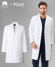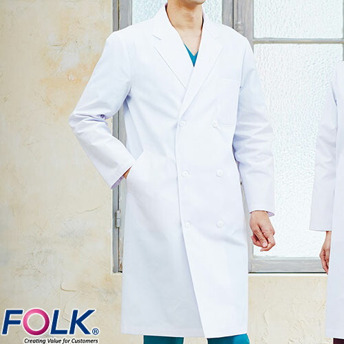 ドクターコート 白衣 1531PO メンズ診察衣ダブル FOLK フォーク メンズ 男性用 長袖 ロング丈 医者 病院 看護師 薬剤師 薬局 医療用制服 ユニフォーム ポケット 実験 名入れ おしゃれ かっこいい 動きやすい おすすめ フォークFOLKスタイリッシュにリニューアルした。