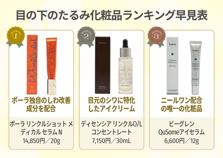 目の下のたるみ向け化粧品のおすすめ人気ランキング 化粧水・美容液・クリームも2025年10月マイベスト。