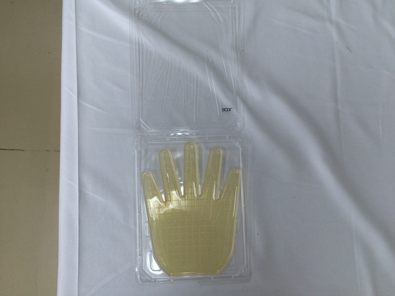 手の指のアカギレ対策としてチタン合金入り「指しっとりサポーター」を使う。