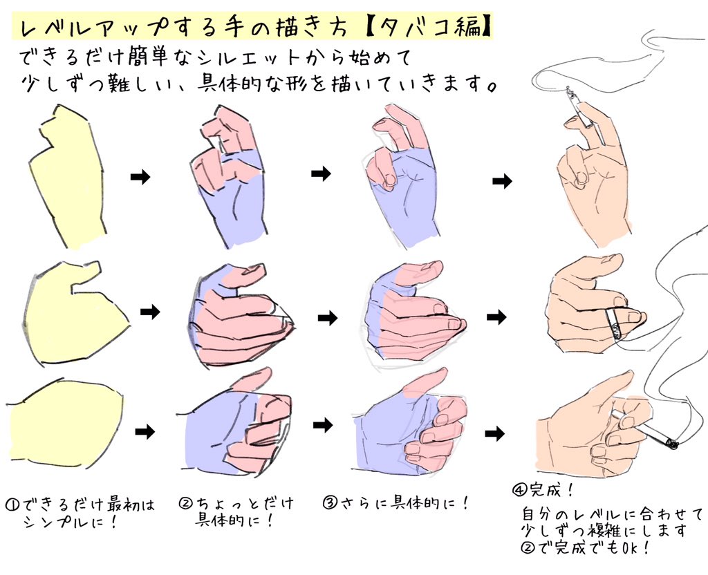 96こげ それっぽく描くコツon X: "レベルアップする手の描き方タバコ編✓カッコいい上司 ✓ダンディーなおじさま ✓一匹狼の暗殺者共通する特徴は? ビギナーからエキスパートまで すべてのレベル帯で使えます。 パターンを一つ覚えるだけでも イラストの。