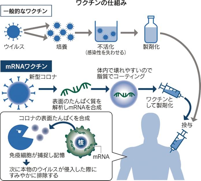mRNA メッセンジャーRNA ワクチンやウイルスベクターワクチンは新しい仕組みのワクチンということですが、どこが既存のワクチンと違うのですか。