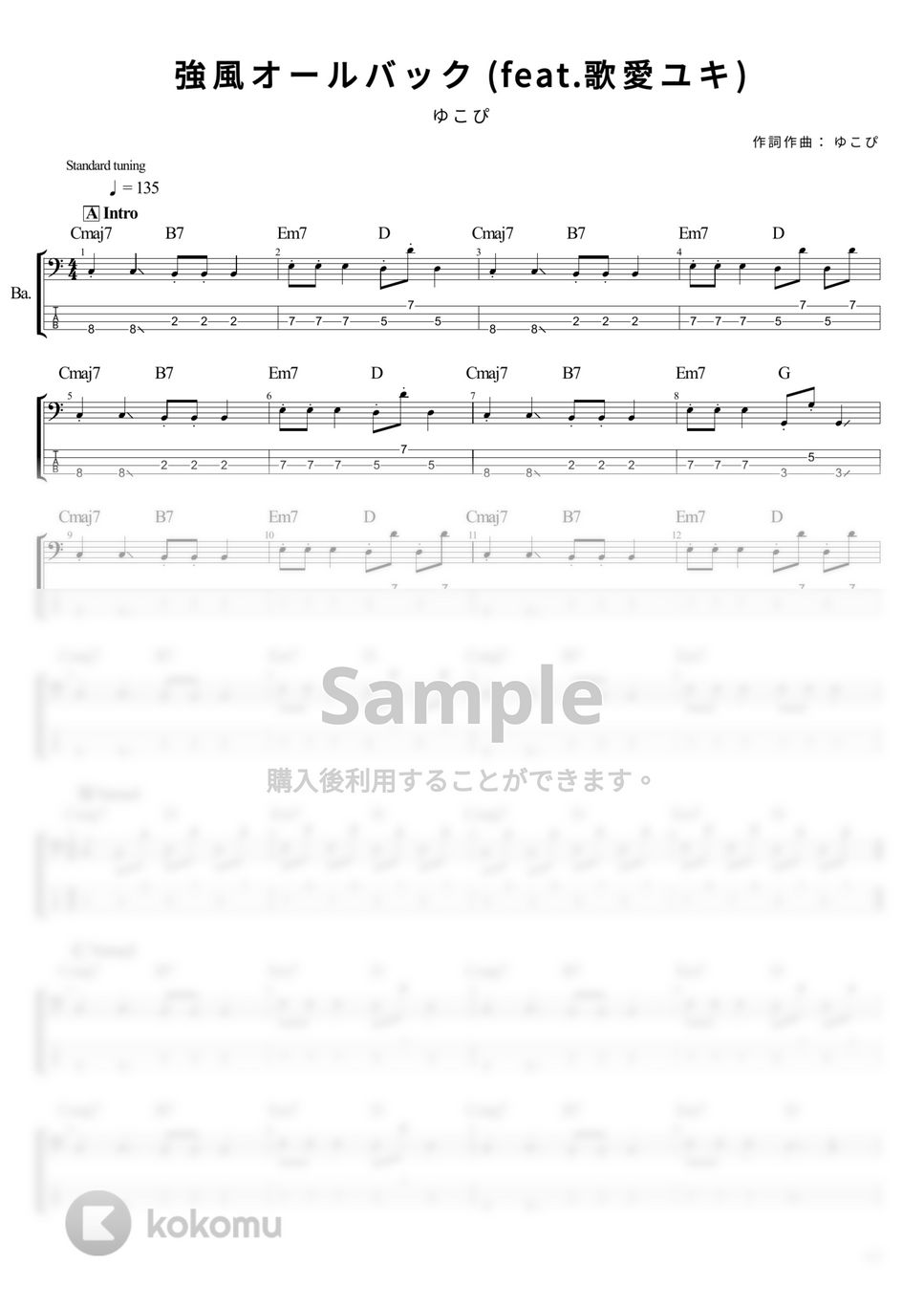 ゆこぴ - 強風オールバックベース Tab譜 4弦タブ+五線譜 by T's bass score。