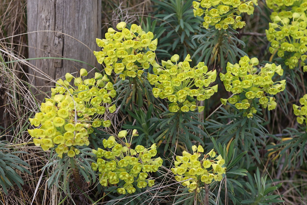 ◎ユーフォルビア・カラキアスでしょうか?散歩道の野草と風。