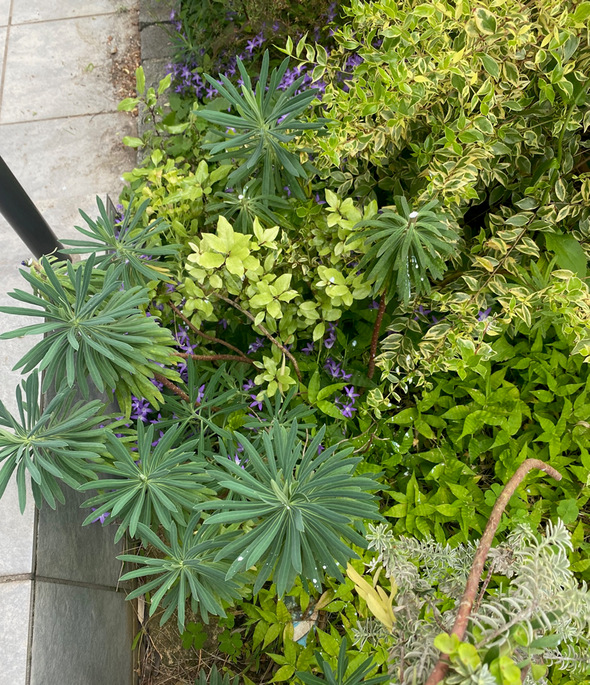 ユーフォルビア・カラキアス園芸の花たち & シダ植物。