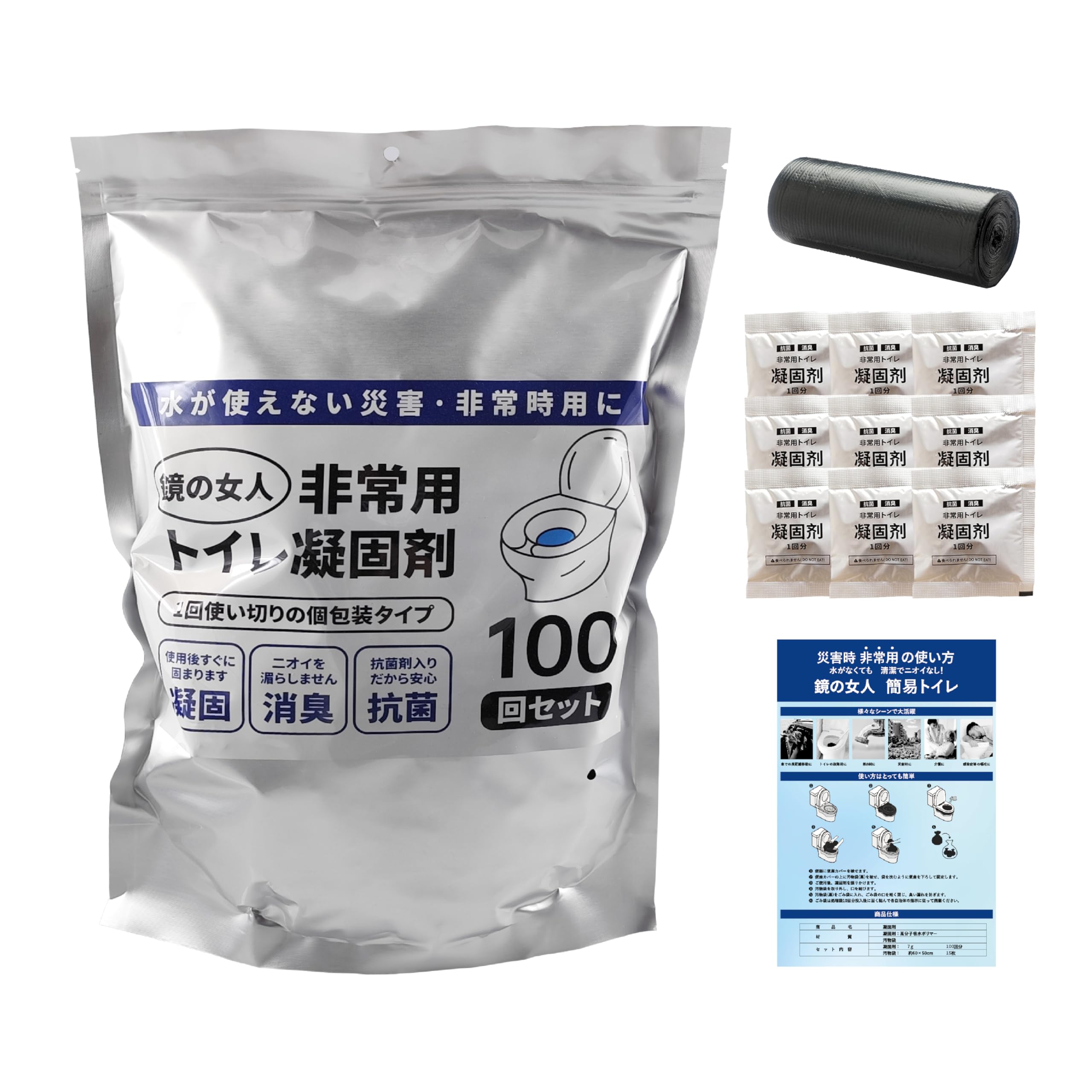 家族で防災 地震 水害 避難 備え 渋滞車内 嘔吐 簡易トイレ 100個 簡易トイレ 災害用 トイレ 50-500回分 凝固剤 個包装 携帯トイレ防災グッズ 災害 防災セット アウトドア 介護用 非常用 緊急時 消臭 抗菌凝固剤 地震 避難 登山50回分トイレ凝固剤 20回分 凝固剤。