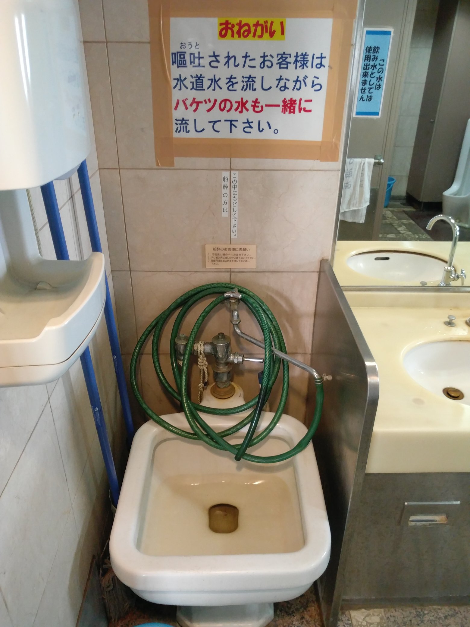 とさか on X: "長距離フェリーのトイレには船酔い対策として『嘔吐用便器』が設置されているんだけど、これをウチの職場にも設置してくれ!と切に願う居酒屋店員はめちゃくちゃ多いと思う。https:t.co 4mYXYLxpvF"X。