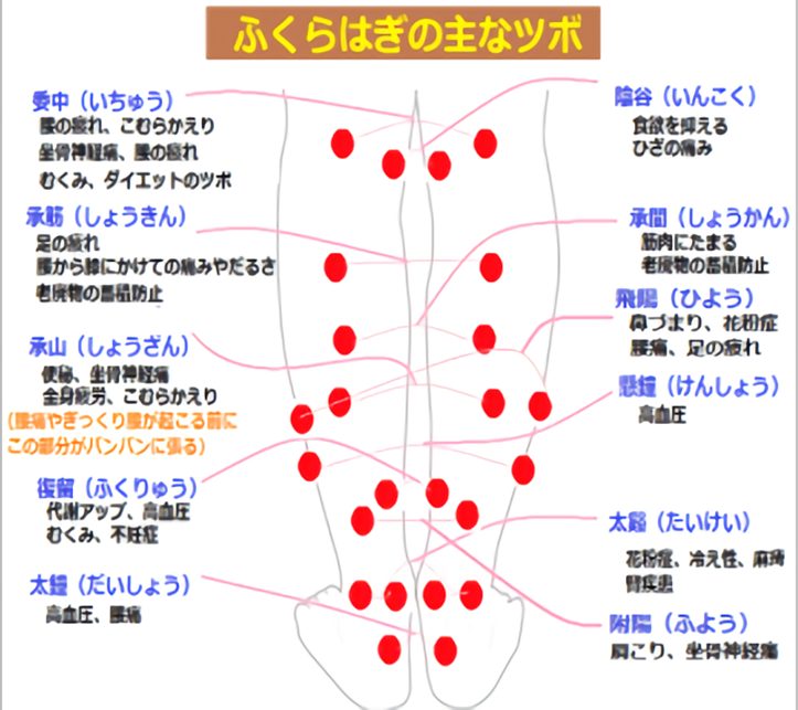 ワンポイントツボ講座 ふくらはぎの攣りや痛みに良いとされるツボ“承筋 ショウキン 穴”つかさはりきゅう整骨院のモモBlog。