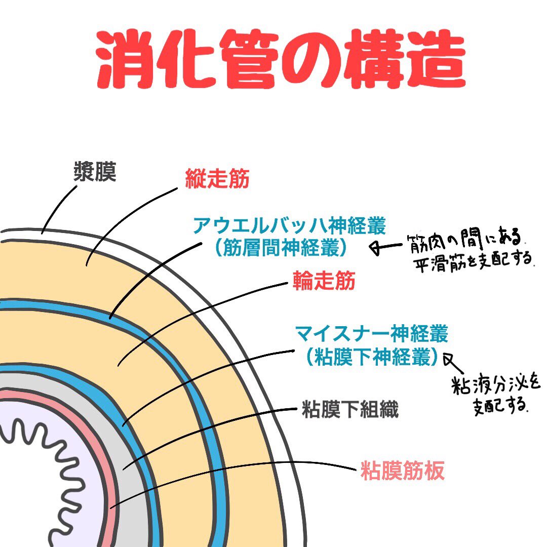 ゴロ−@解剖生理イラスト on X: "マイスナー神経叢とか アウエルバッハ神経叢とか 位置関係がちんぷんかんぷんな人へ。https:t.co Pz1RxEAAqO"X。