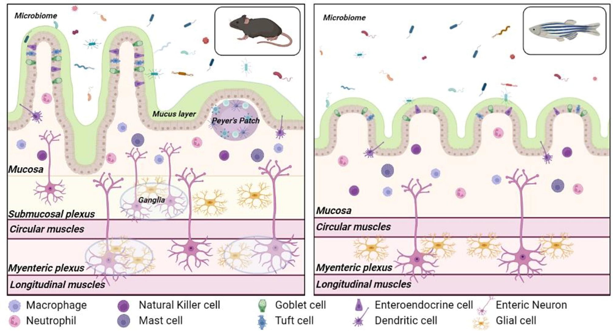 自閉症スペクトラムの腸管神経系における神経・免疫相互作用のトランスレーショナルモデルとしてのゼブラフィッシュ Danio rerio 哉百名。