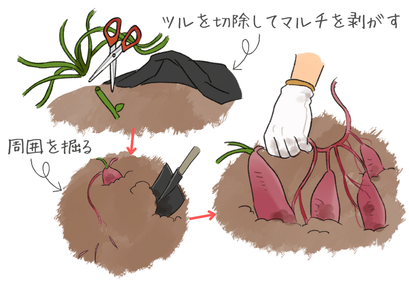さつまいものつるの処理は3パターン!収穫後の畑や土の手入れは?来年の苗の作り方や芋が腐る原因についても分かりやすく解説♪ある日のベリーファーム。