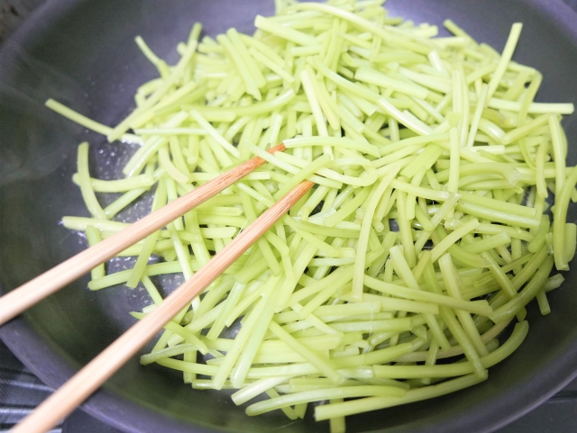 サツマイモの「茎」が手に入ったら是非味わってほしい一品♪ご飯のおかずに!お弁当に!お酒のつまみに!「芋づるのきんぴら」株式会社松陰会舘。