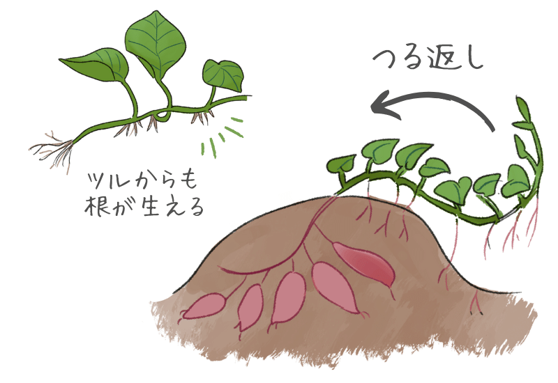 サツマイモの栽培をしていますが「つる返し」のコツを教えてください。