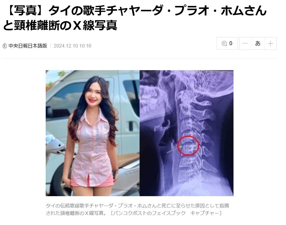 タイでマッサージを受けた女性歌手が施術後に体調悪化で死亡 死亡した原因は“首のマッサージ”ではないかとされているが- ワイズデジタル タイ で生活する人のための情報サイト。