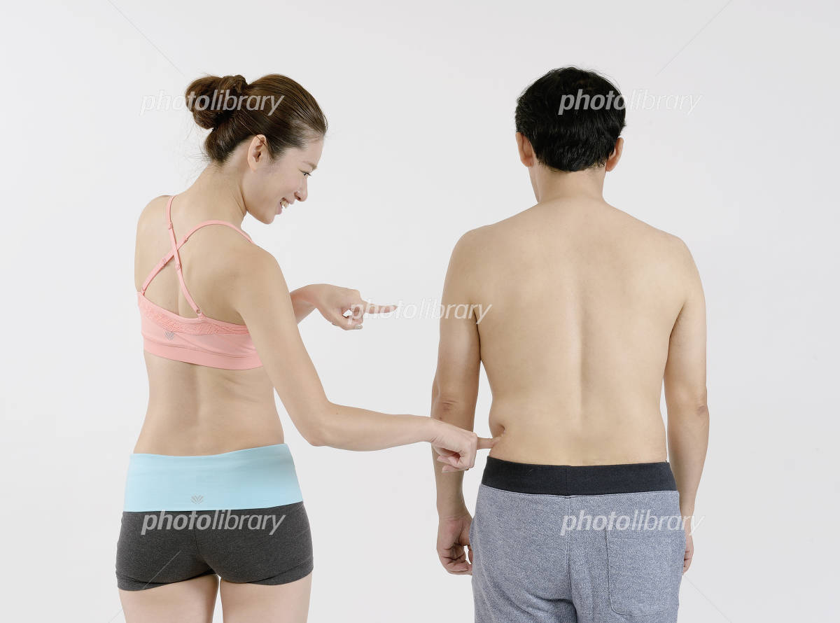中年太りの腹を見て笑うスタイルの良い若い女性 写真素材4152829- フォトライブラリ。