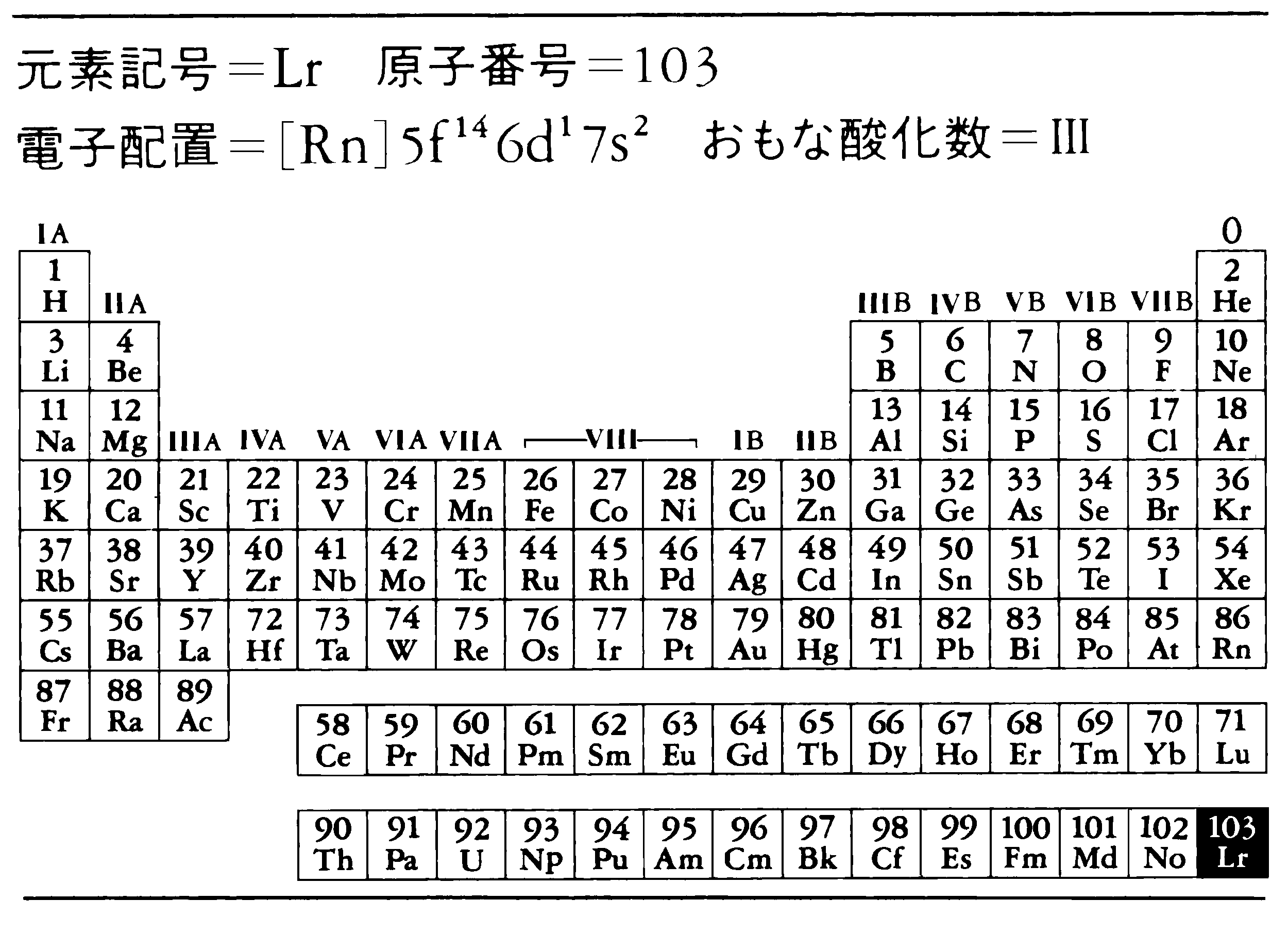 103番元素ローレンシウム Lr が解く 周期表のパズル 〜あの周期表が書き換わる。