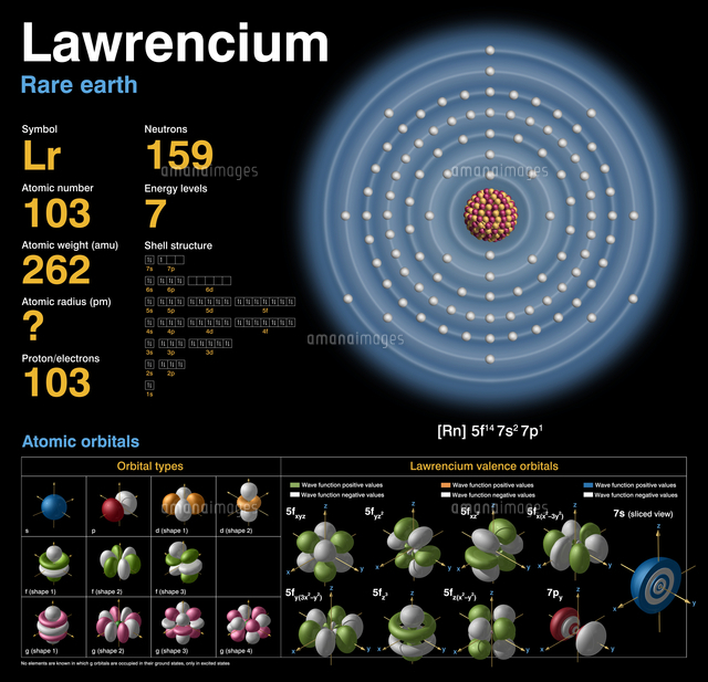 ローレンシウム 核構成、電子構成、化学データ、原子価軌道の図 01809031946 の写真・イラスト素材アマナイメージズ。