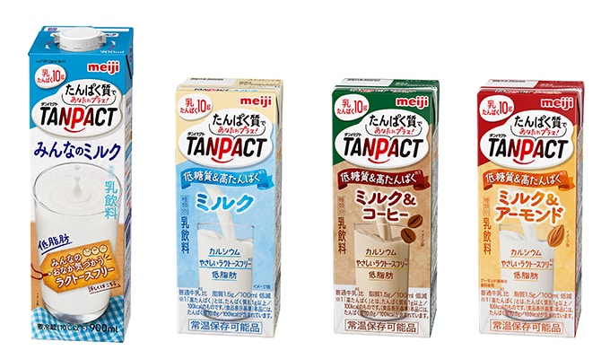 ミルクと100年以上向き合ってきた明治より新提案!手軽にたんぱく質10gが取れて牛乳でおなかがゴロゴロする方にもやさしいラクトースフリーのミルク「明治TANPACTみんなのミルク」「明治TANPACTミルク 同ミルク&コーヒー 同ミルク&アーモンド」2023年4月4日新発売。