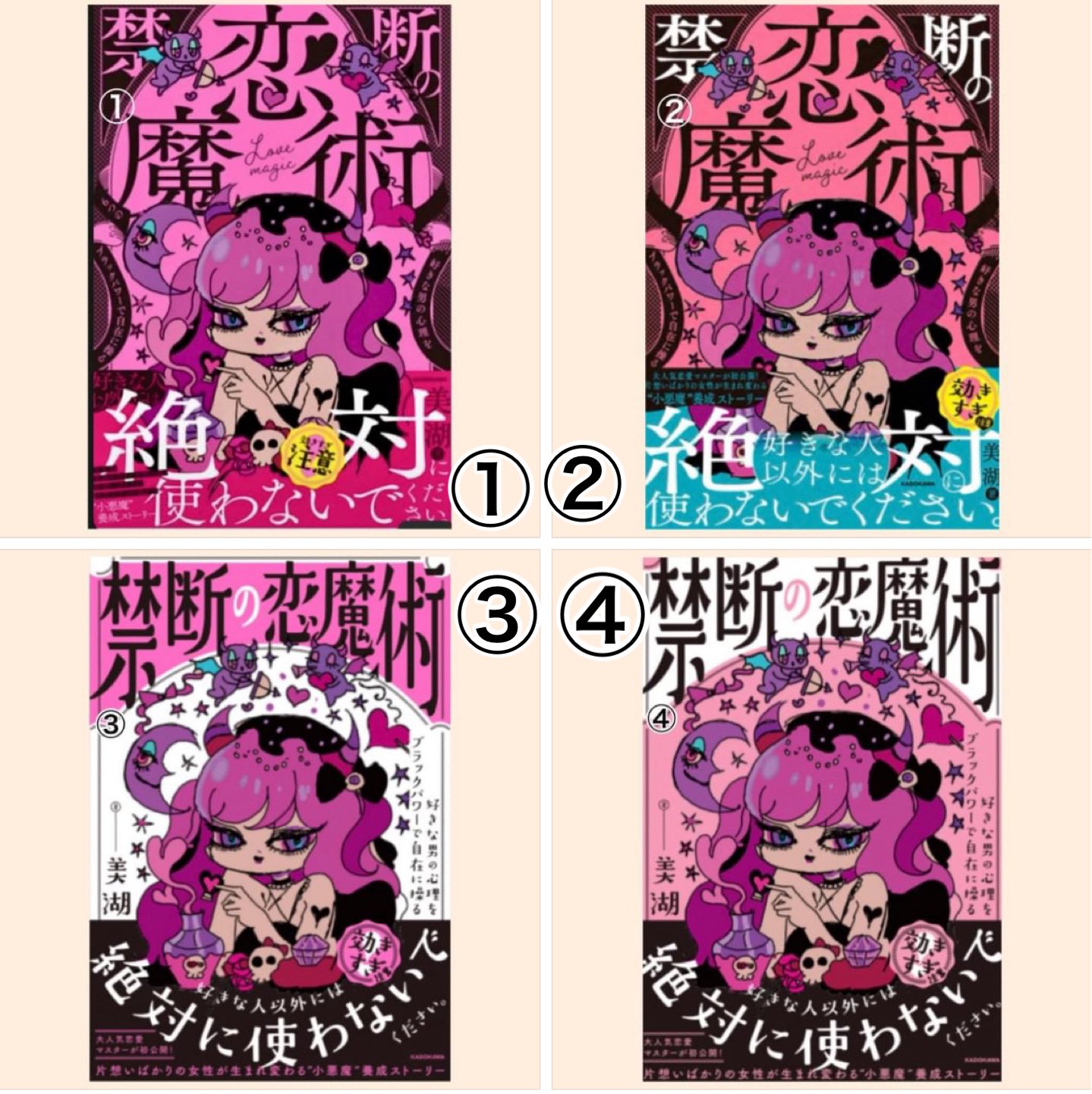 美湖👽ネオスピ!!!←初書籍㊗️Amazon総合1位KADOKAWA on X: " どれが好き?4冊目の書籍の表紙のデザイン、キターー ❣️みんなはどれが好き? ぜひ番号で教えてーー! 4冊目のブラックスピリチュアル本は 小悪魔大魔女の、「禁断の魔術本」です♡ どれもエネルギー。