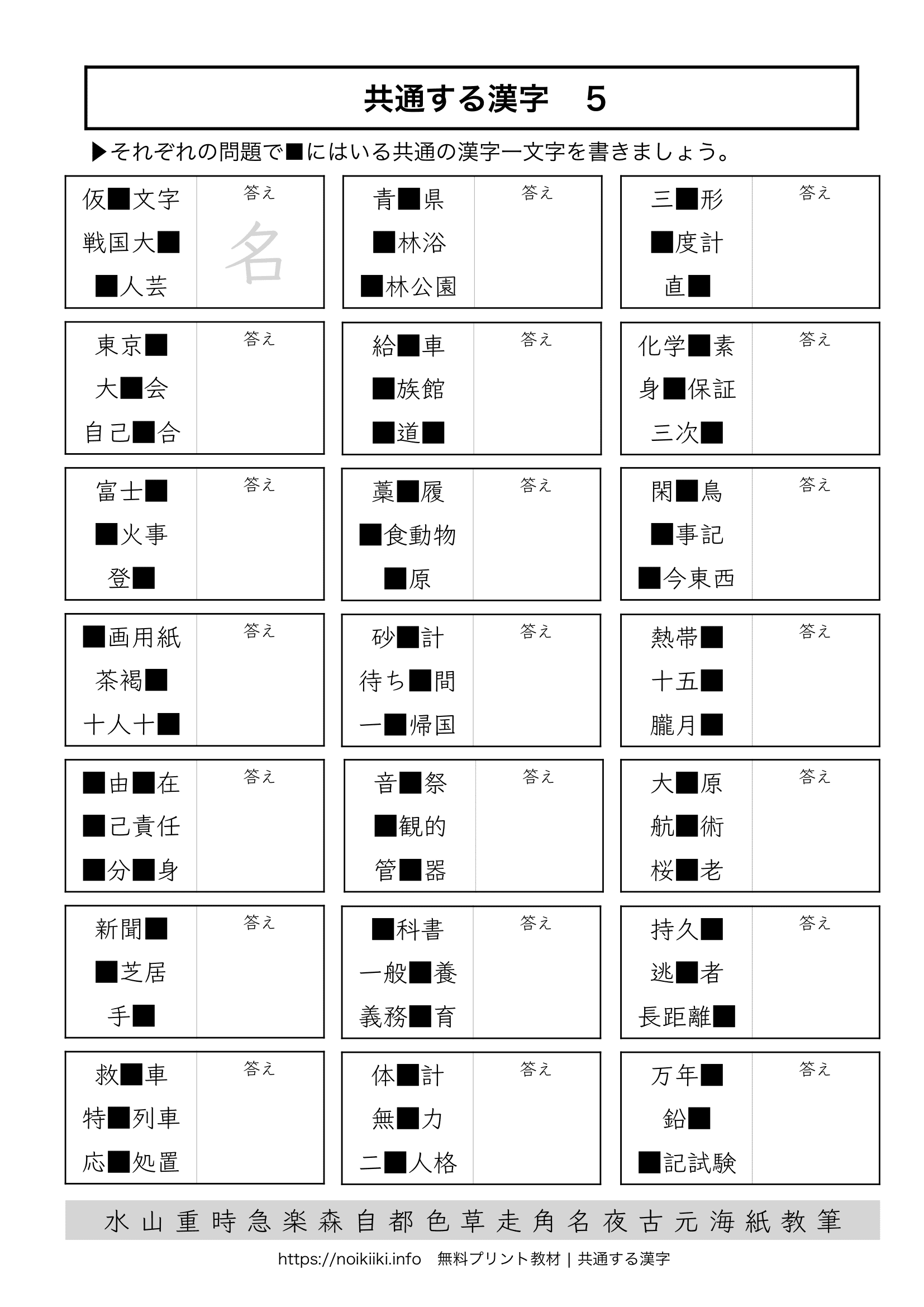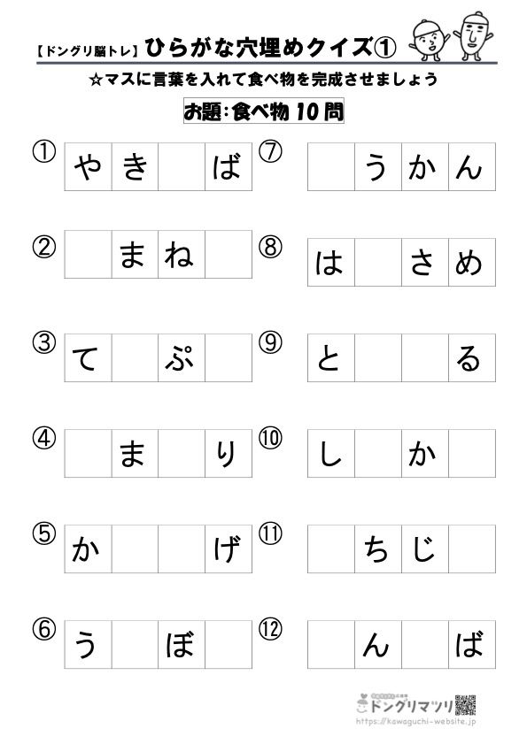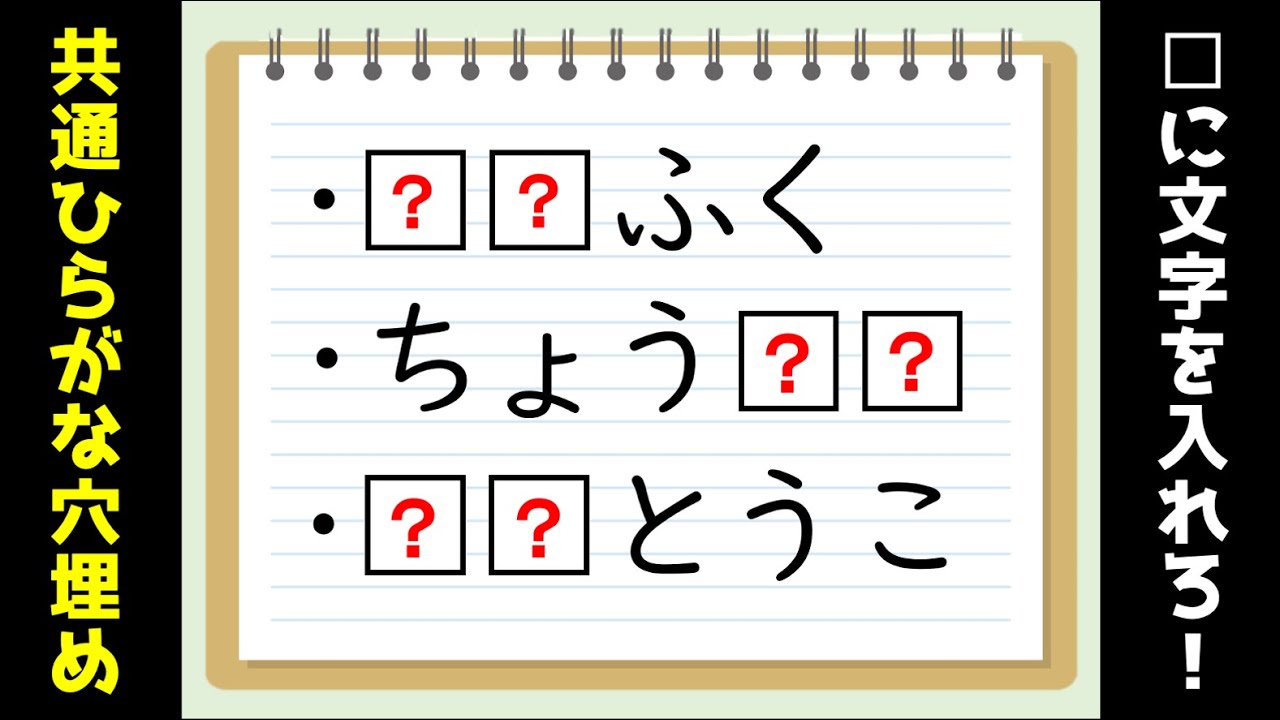 脳トレクイズ 簡単・高齢者向け!ひらがな共通穴埋め問題を紹介! 全10問。