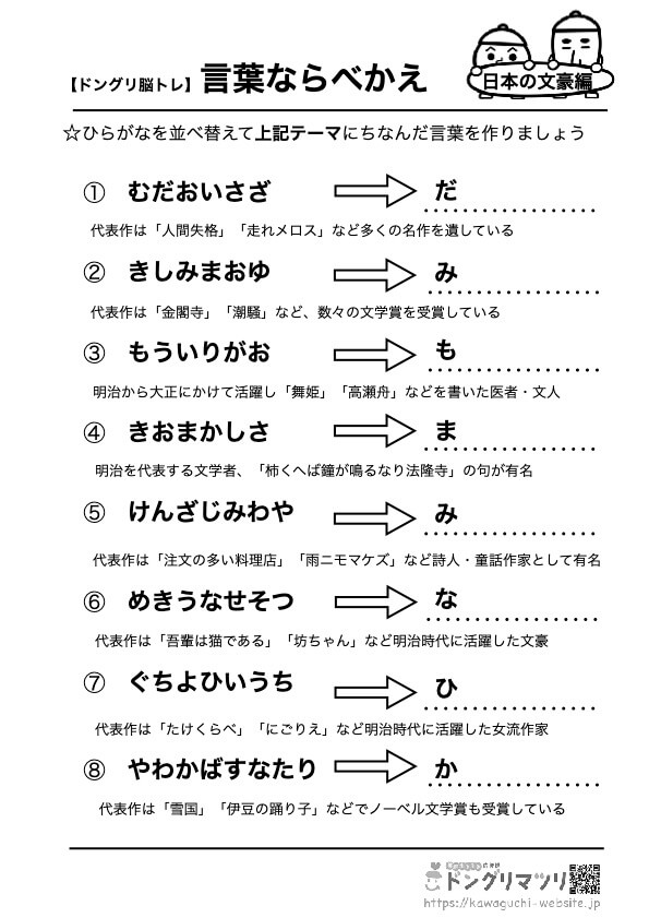 高齢者向け脳トレ無料 言葉あそびプリント認知症予防や介護レクリエーションに最適高齢者用脳トレ・塗り絵無料ドングリマツリ認知症予防クイズ・レク。