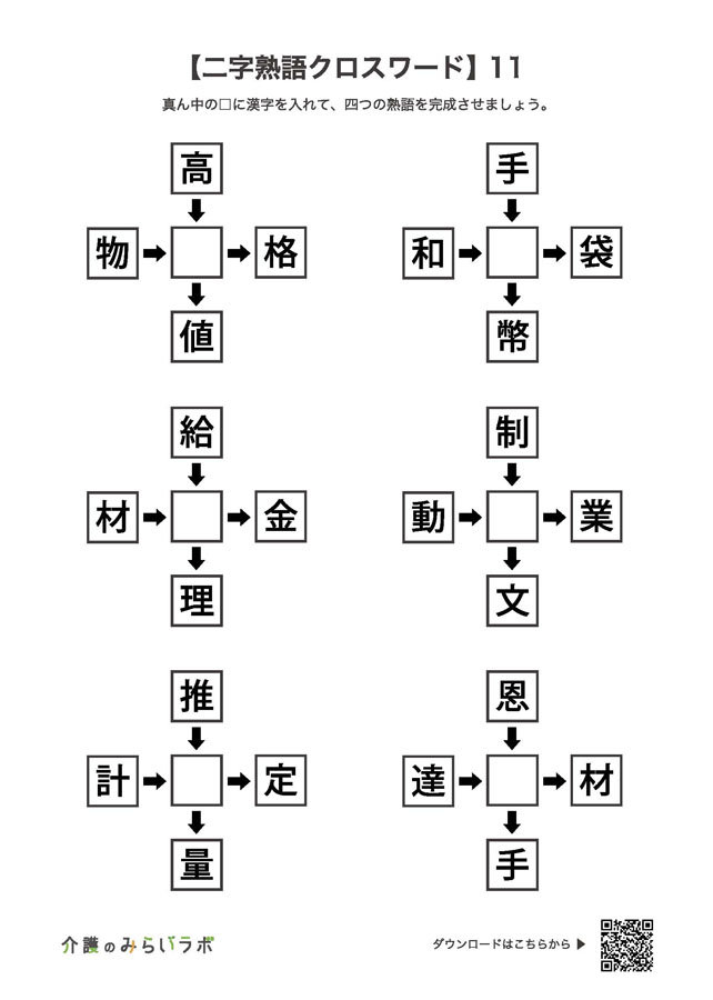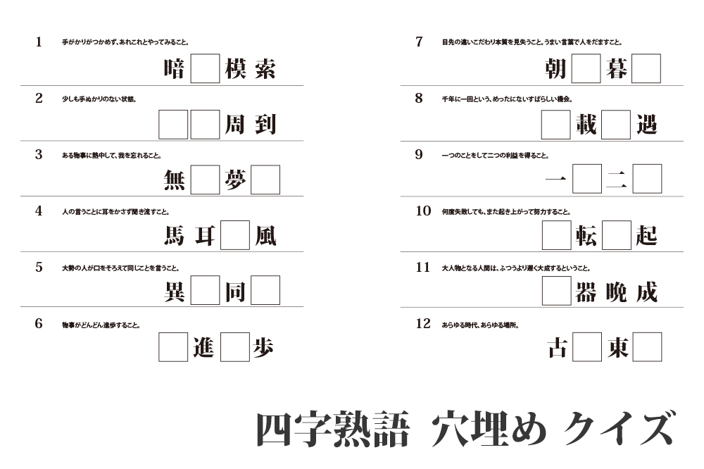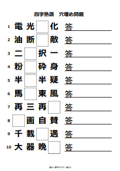 四字熟語 穴埋めクイズ』無料 プリント高齢者の脳トレ&レクリエーションORIGAMIシニア。