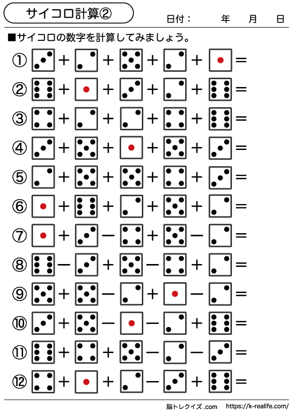 脳トレプリント・問題 2.サイコロ計算脳トレプリント 無料 脳トレクイズ.com。
