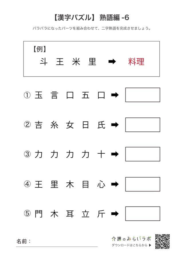 文字ならべかえクイズ 5文字編④明日の介護をもっと楽しく 介護のみらいラボ 公式。