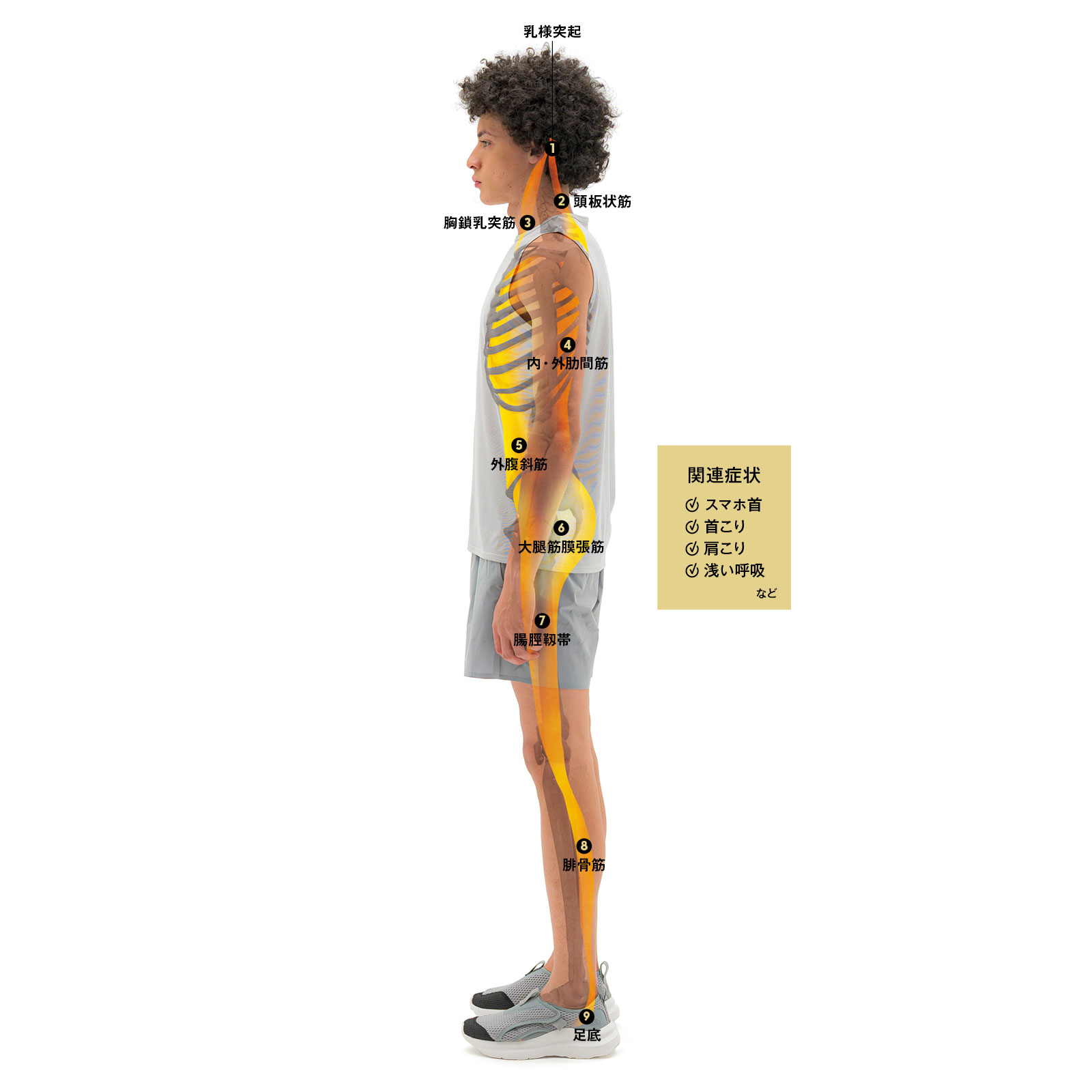 側面 体の側面を通る筋肉のつながり アナトミートレイン:ラテラルライン。
