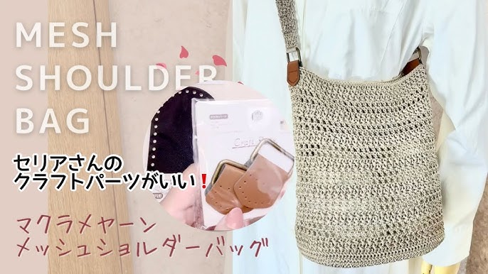 無料編み図・かぎ針編み DAISOマクラメヤーンとSeriaバッグ用底板で 2Way 巾着バッグハルズニッティング。
